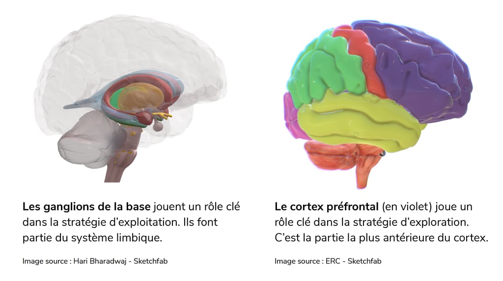 Toute organisation, et tout cerveau, doit maîtriser les 2 grands types de stratégies d'apprentissage : l'exploitation et l'exploration (Gupta, Smith, & Shalley, 2006) [1].